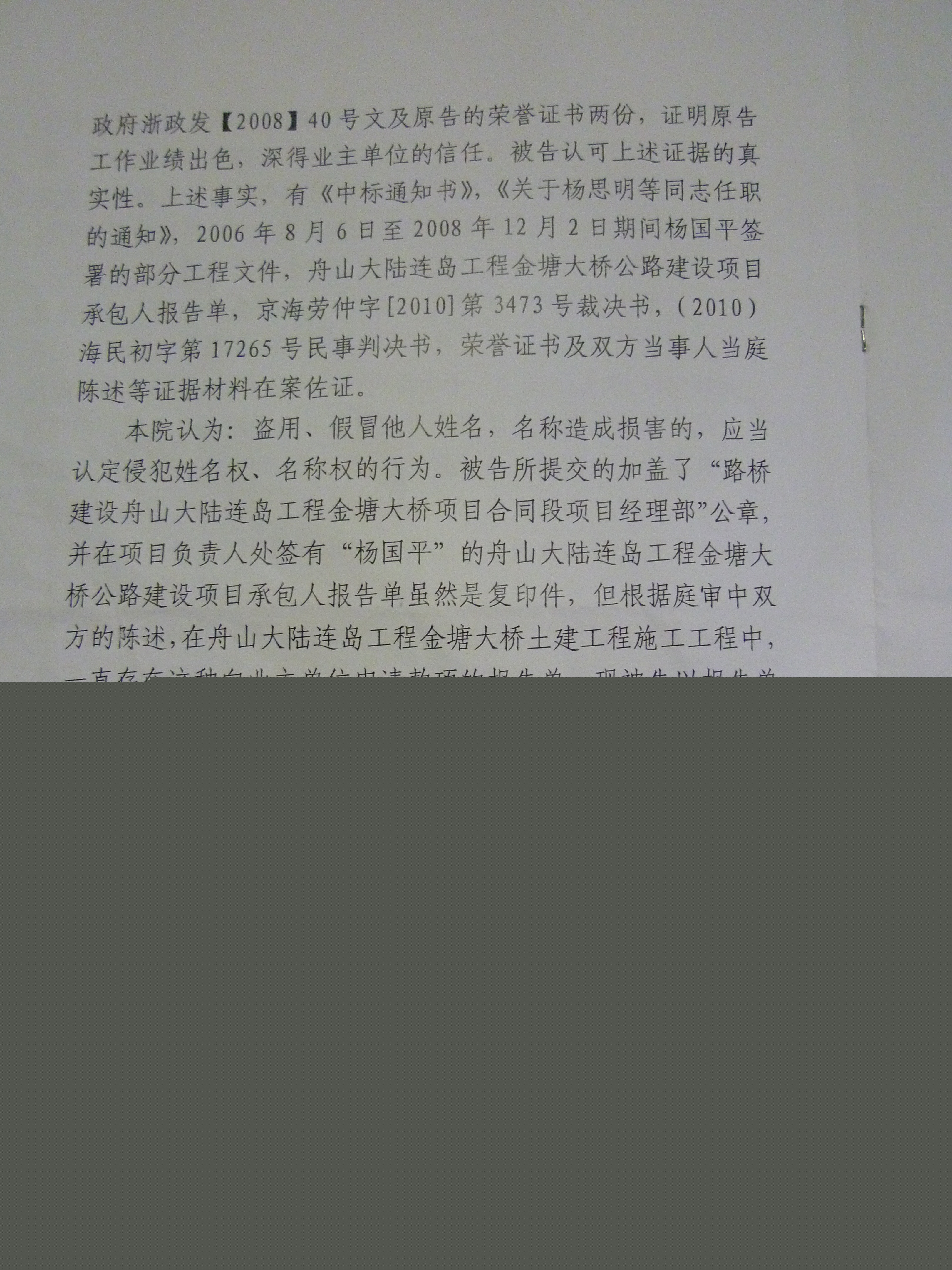 北京市海淀區(qū)人民法院民事裁決書((2010)海民初字第17265號)中指出,“金塘大橋第II合同段工程已超過路橋華東公司所能承建的工程標(biāo)的額范圍。”“但該工程存在分包情形,該工程實際施工方為路橋華東。”