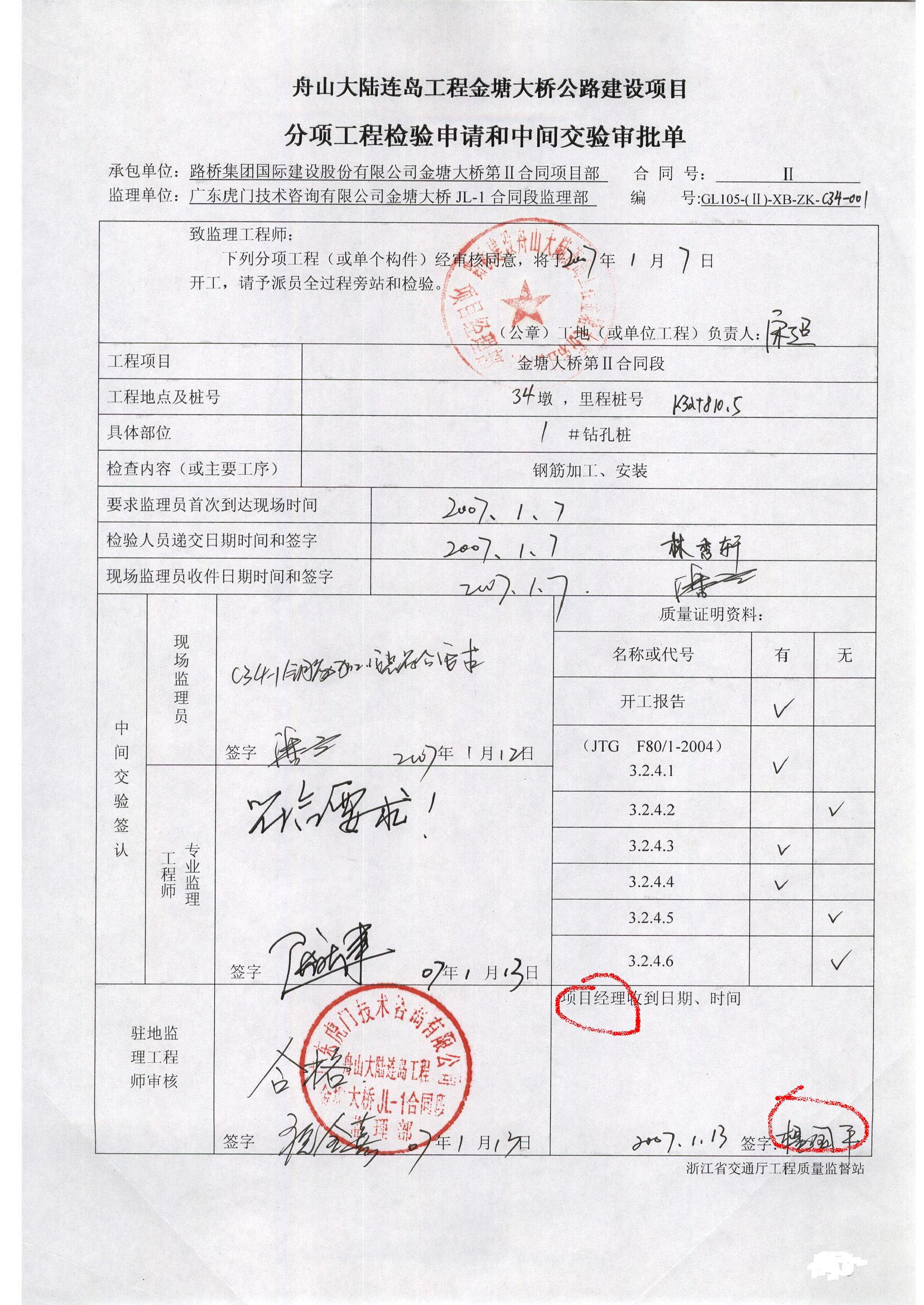 金塘大橋第Ⅱ合同段項目一度出現(xiàn)三個不同的項目經(jīng)理。根據(jù)當(dāng)初“指揮部”發(fā)給路橋建設(shè)的中標(biāo)通知書顯示,項目經(jīng)理為楊思民。